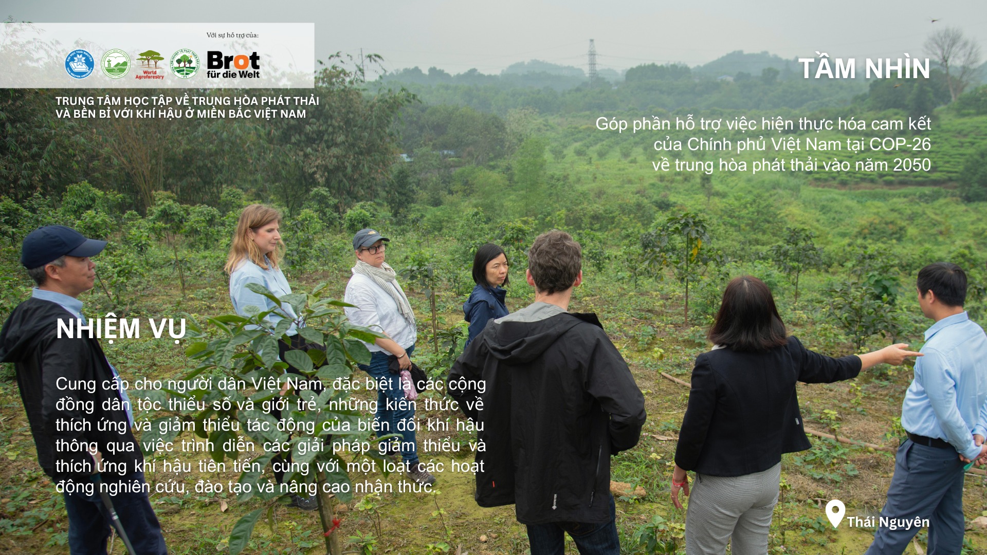 Nhận thấy Việt Nam nằm trong số 5 quốc gia có khả năng bị ảnh hưởng nặng nề nhất do tác động của biến đổi khí hậu, Tổ chức Bánh mỳ cho Thế giới (BftW), Tổ chức Nghiên cứu Nông Lâm Quốc tế (ICRAF) tại Việt Nam, Trường Đại học Nông Lâm – Đại học Thái Nguyên (ĐHNLTN), và Viện Lâm nghiệp và Phát triển bền vững (IFS) đã cùng nhau thực hiện một dự án đầy ý nghĩa mang tên “Trung tâm học tập về Trung hoà phát thải và Bền bỉ với khí hậu ở miền Bắc Việt Nam”, hay còn gọi là Dự án LEARN-VN.