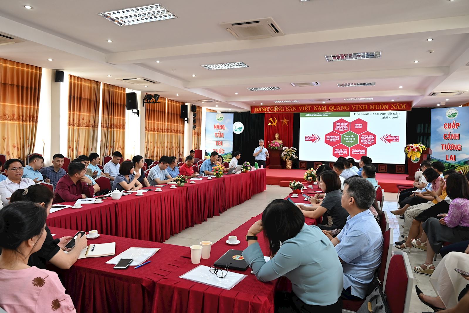 Đại diện cho CIFOR-ICRAF, TS. Nguyễn Quang Tân – Giám đốc Quốc gia CIFOR-ICRAF Việt Nam – đã có bài trình bày tổng quan về Dự án “Trung tâm học tập về Trung hòa phát thải và Bền bỉ với khí hậu ở miền Bắc Việt Nam (LEARN-VN)”. Đây là dự án nhằm hỗ trợ thực hiện cam kết của Chính phủ Việt Nam trong việc đạt mục tiêu phát thải ròng bằng không vào năm 2050 thông qua tăng cường năng lực cộng đồng và các giải pháp khí hậu tích hợp.