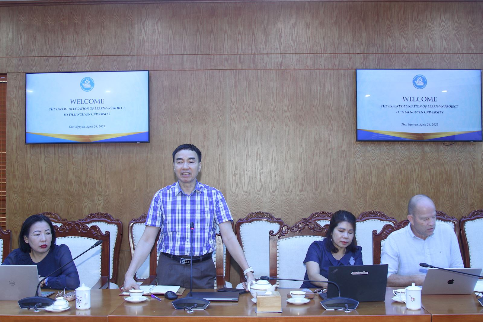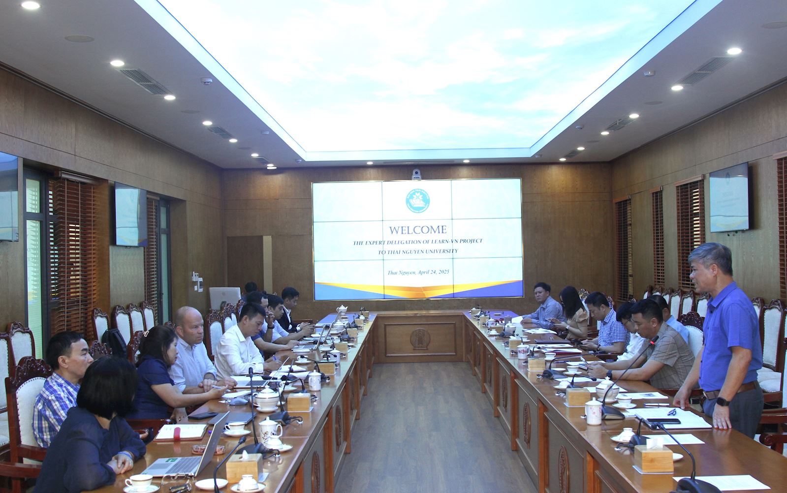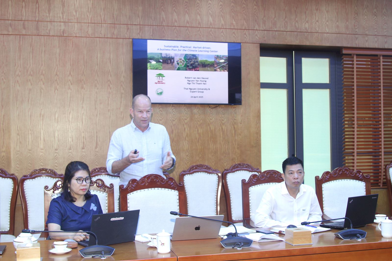 Dự buổi làm việc có ông Robert van den Heuvel – Trưởng nhóm chuyên gia tư vấn xây dựng kế hoạch kinh doanh của dự án LEARN-VN. Tiếp và làm việc với Đoàn có PGS.TS Trần Thanh Vân – Phó Giám đốc Đại học Thái Nguyên cùng đại diện lãnh đạo các ban chức năng, các trung tâm trực thuộc, lãnh đạo Trường Đại học Nông Lâm và Viện Lâm nghiệp và Phát triển bền vững (Trường Đại học Nông Lâm).