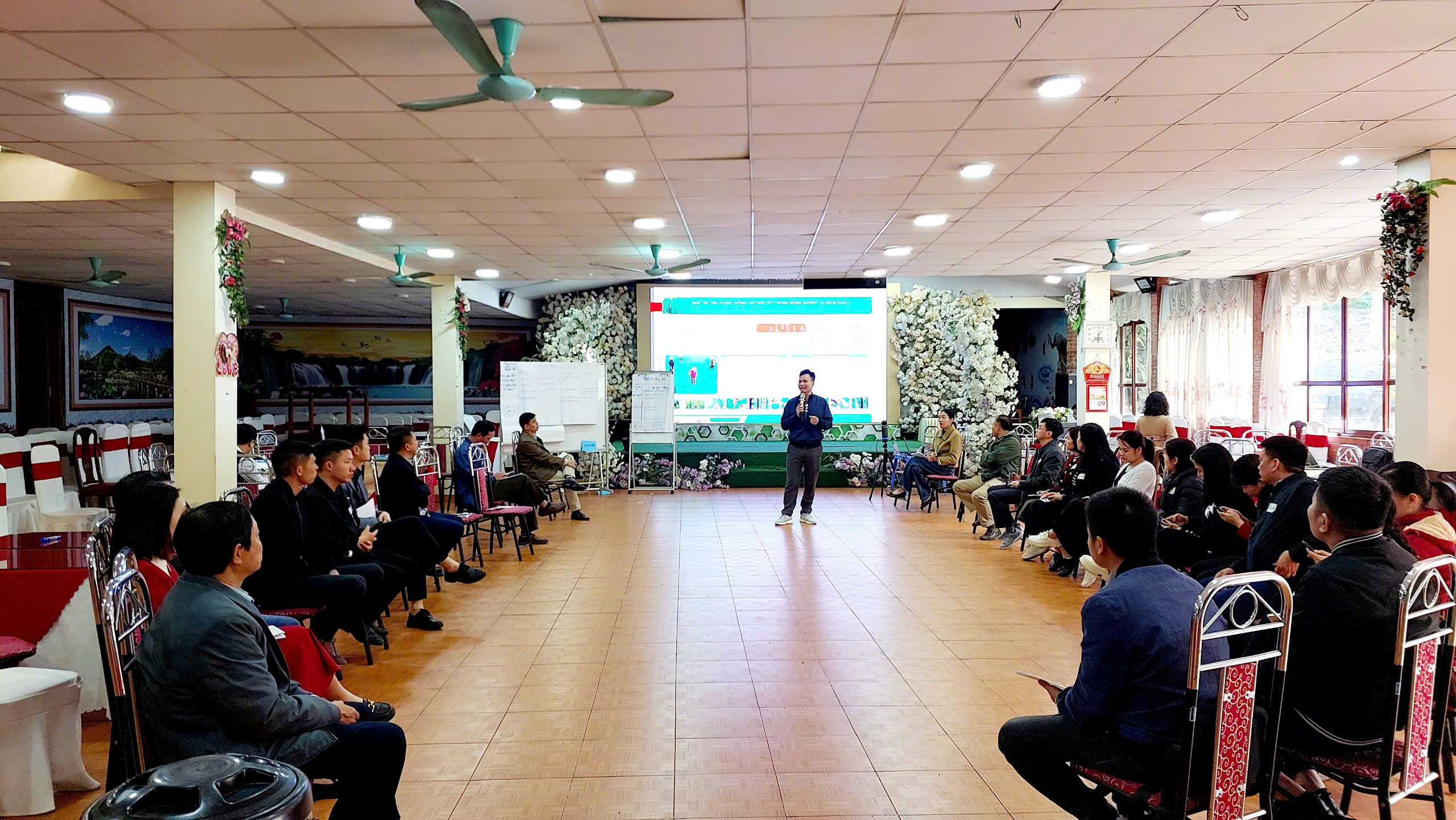 Sáng ngày 11/3/2025, ông Tô Mạnh Tiến – Phó chủ tịch Hội Nông dân tỉnh Lào Cai đã phát biểu khai mạc và chia sẻ các thông tin chung về khoá học, đồng thời khẳng định tầm quan trọng của việc phát triển dịch vụ khí hậu nông nghiệp và vai trò của thông tin khí hậu trong sản xuất nông nghiệp và ứng phó với các thách thức của Biến đổi khí hậu