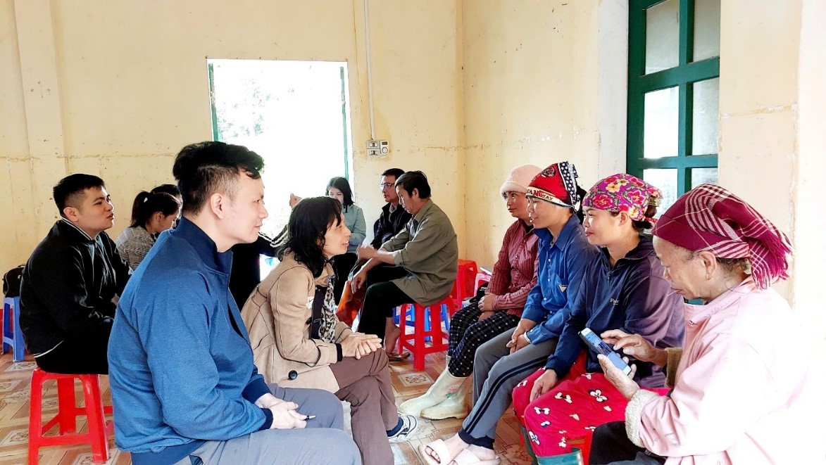 Học viên và tập huấn viên trao đổi cùng người dân